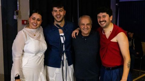 Logo da actuación, o alcalde de Xenebra, presente na Sala, achegouse a departir con Antía, Pablo e Eloy. Alfonso Gómez, membro do Partido Verde, é natural de Corme, mesmo lugar de nacemento que Eloy Vidal.